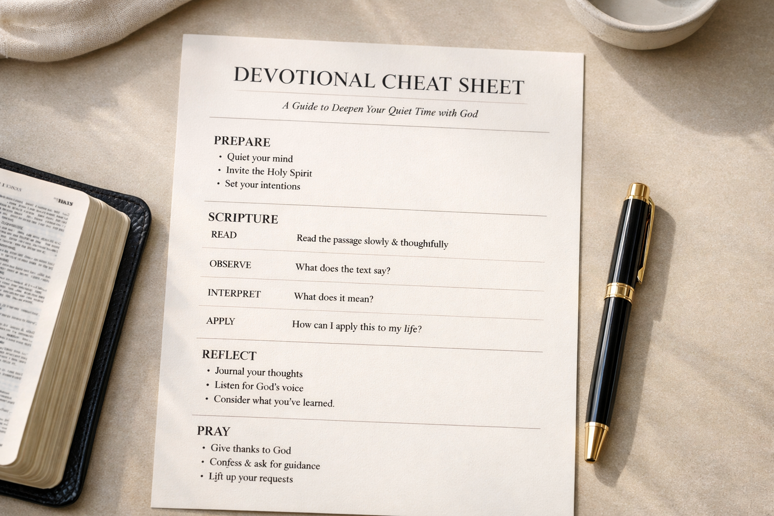 Download the 5-Minute Devotional Cheat Sheet below and keep it somewhere visible.