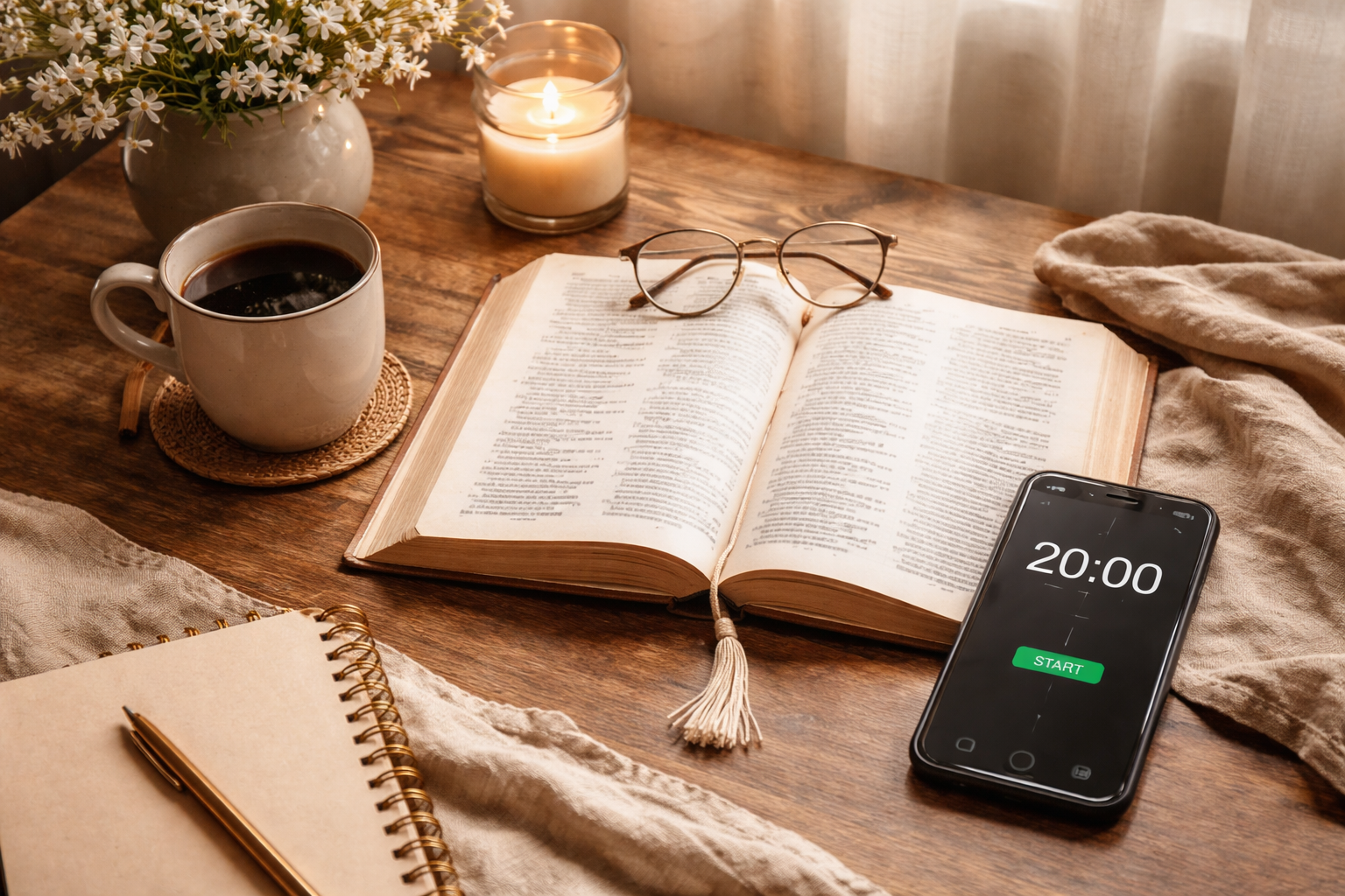 Before I open my Bible, I take 60 seconds to just be still. No phone, no talking, no multitasking.